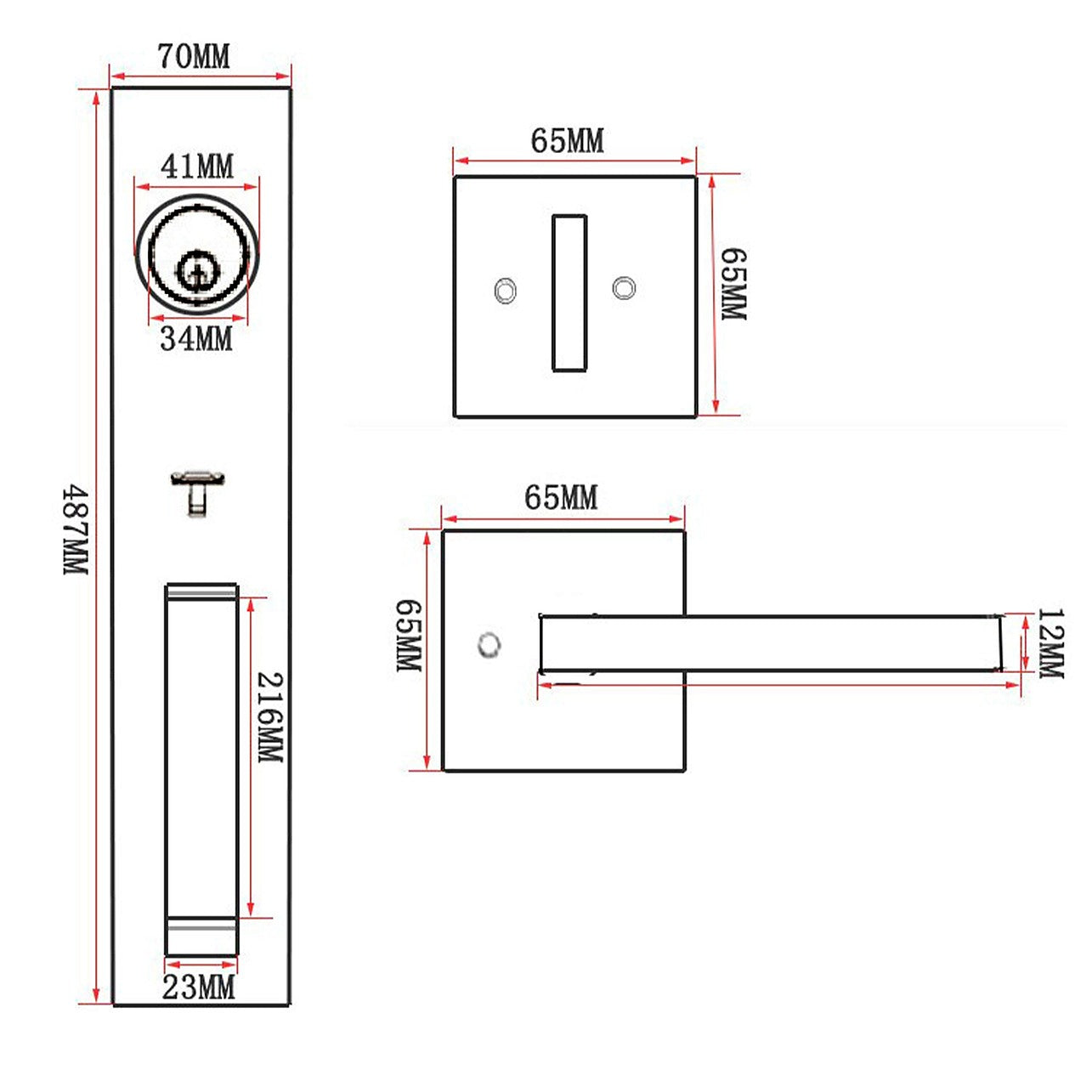 - Adjustable backset latch from 60mm to 70mm with square corner striker