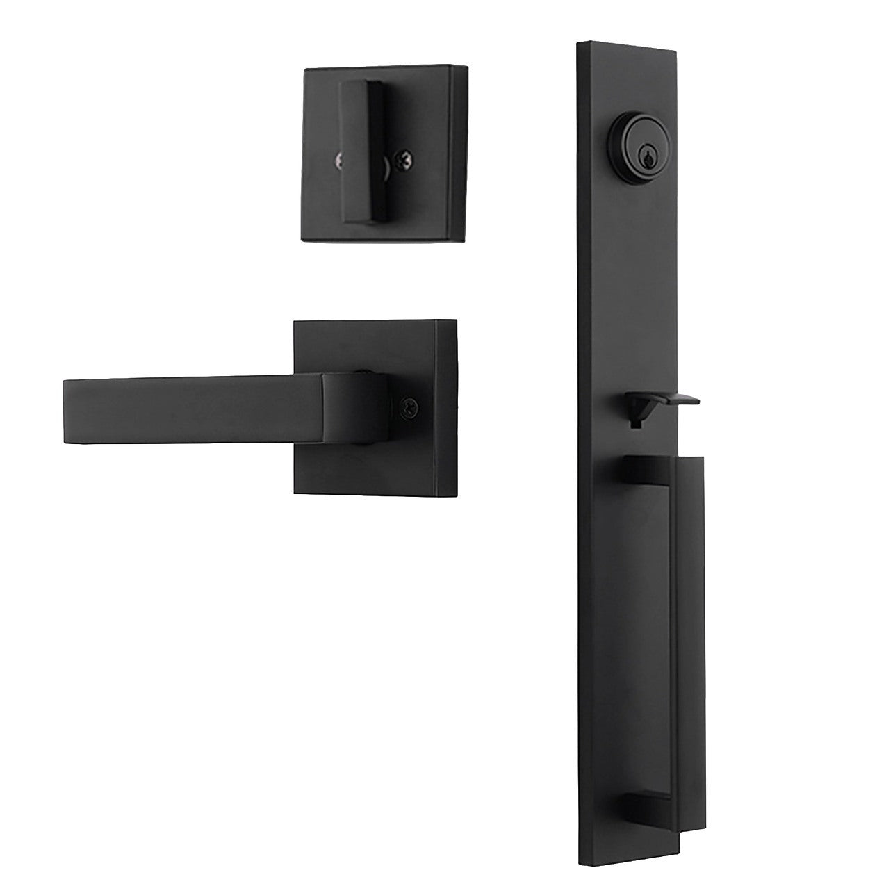 Matte Black Single Door Handle Set Dummy Front Entry with Deadbolt Style Lock