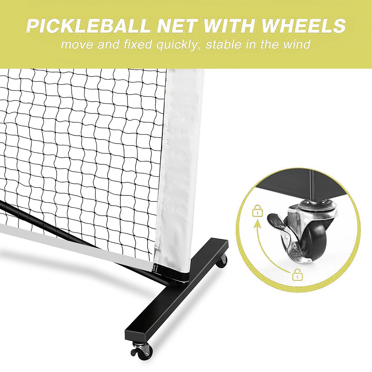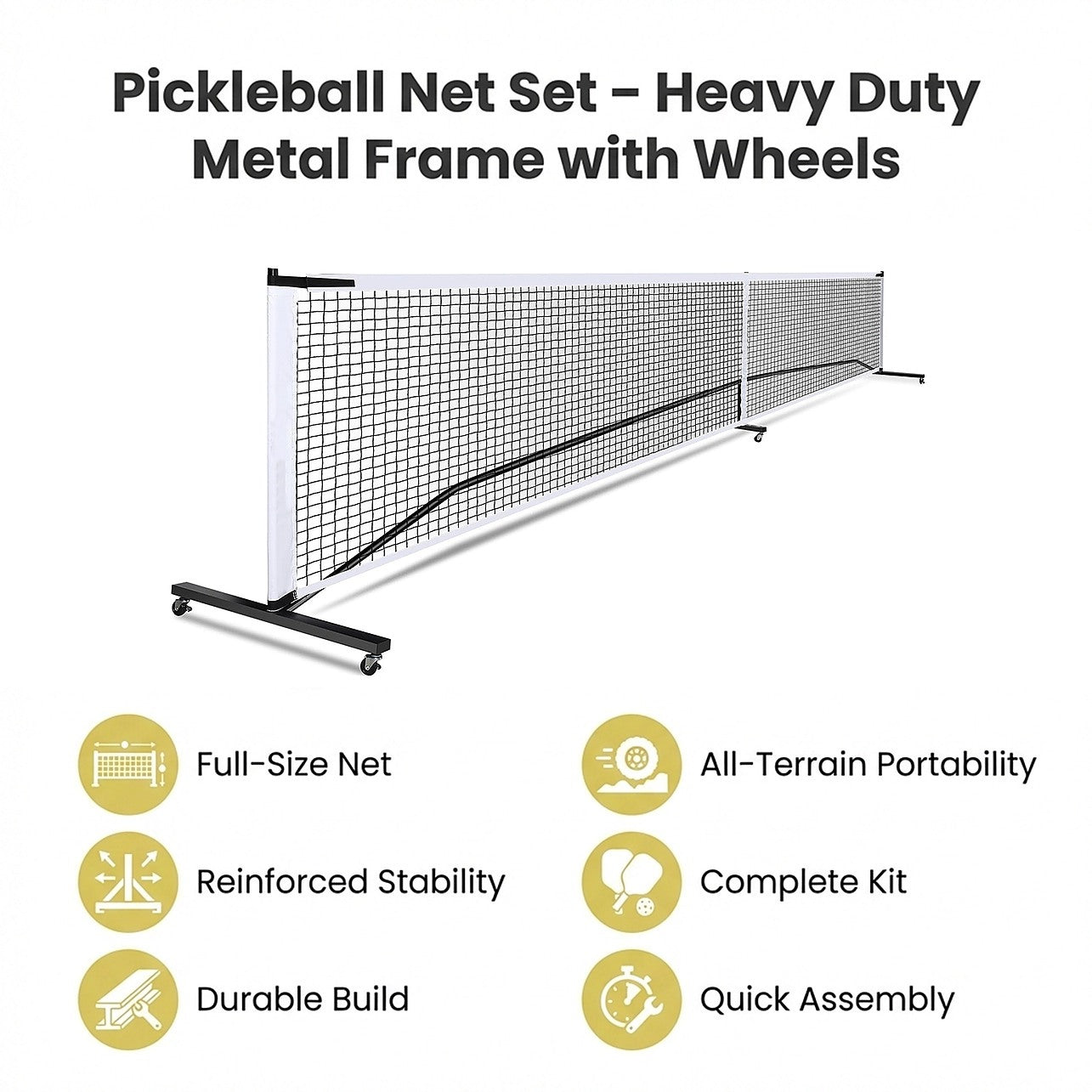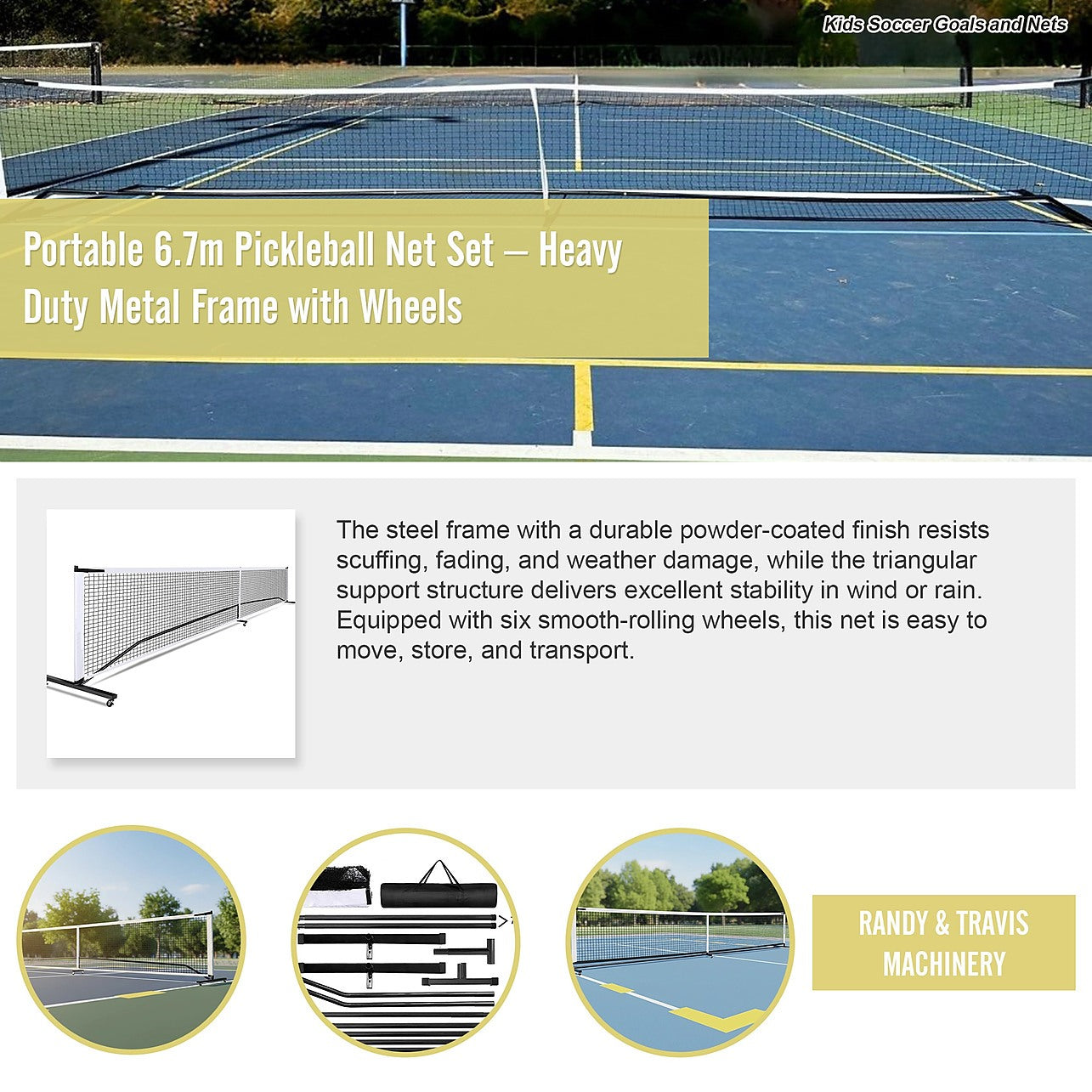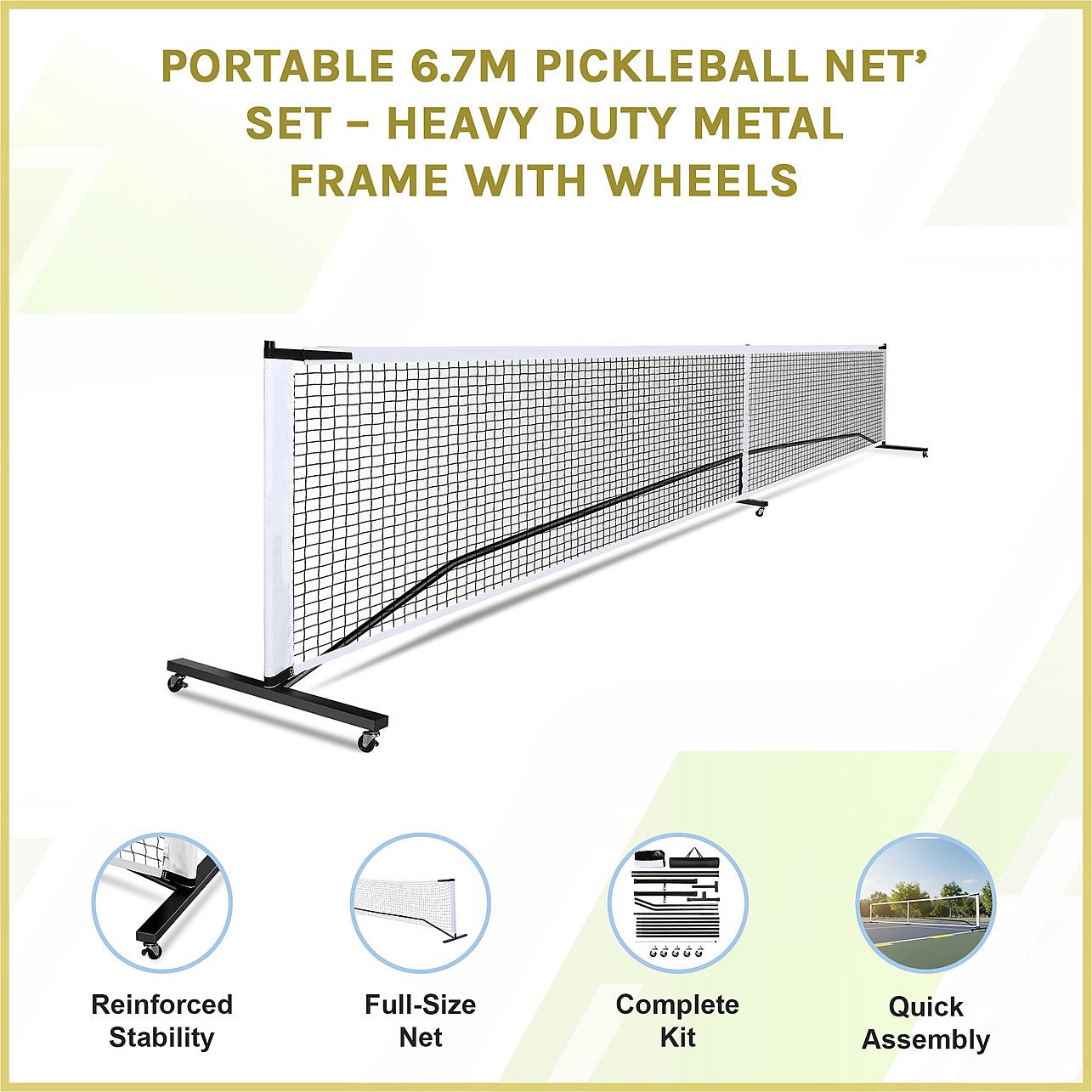 Portable 6.7m Pickleball Net Set with Heavy-Duty Metal Frame & Smooth-Rolling Wheels