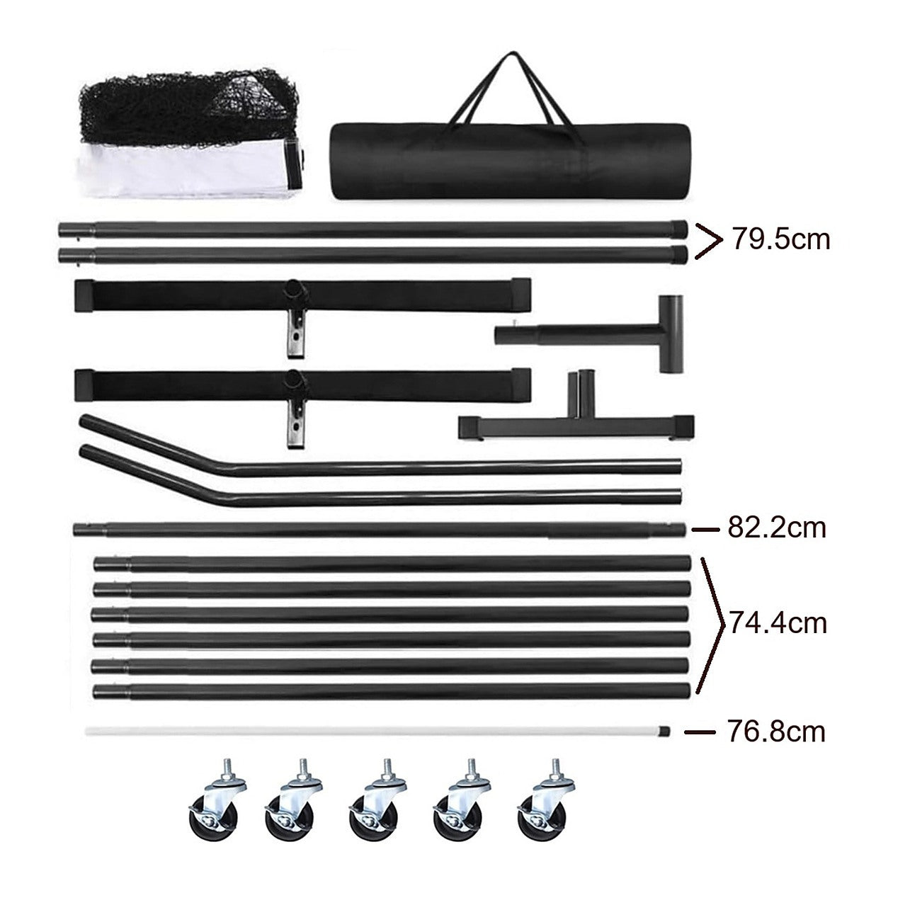 The steel frame with a durable powder-coated finish resists scuffing, fading, and weather damage, while the triangular support structure delivers excellent stability in wind or rain. Equipped with six smooth-rolling wheels, this net is easy to move, store, and transport.