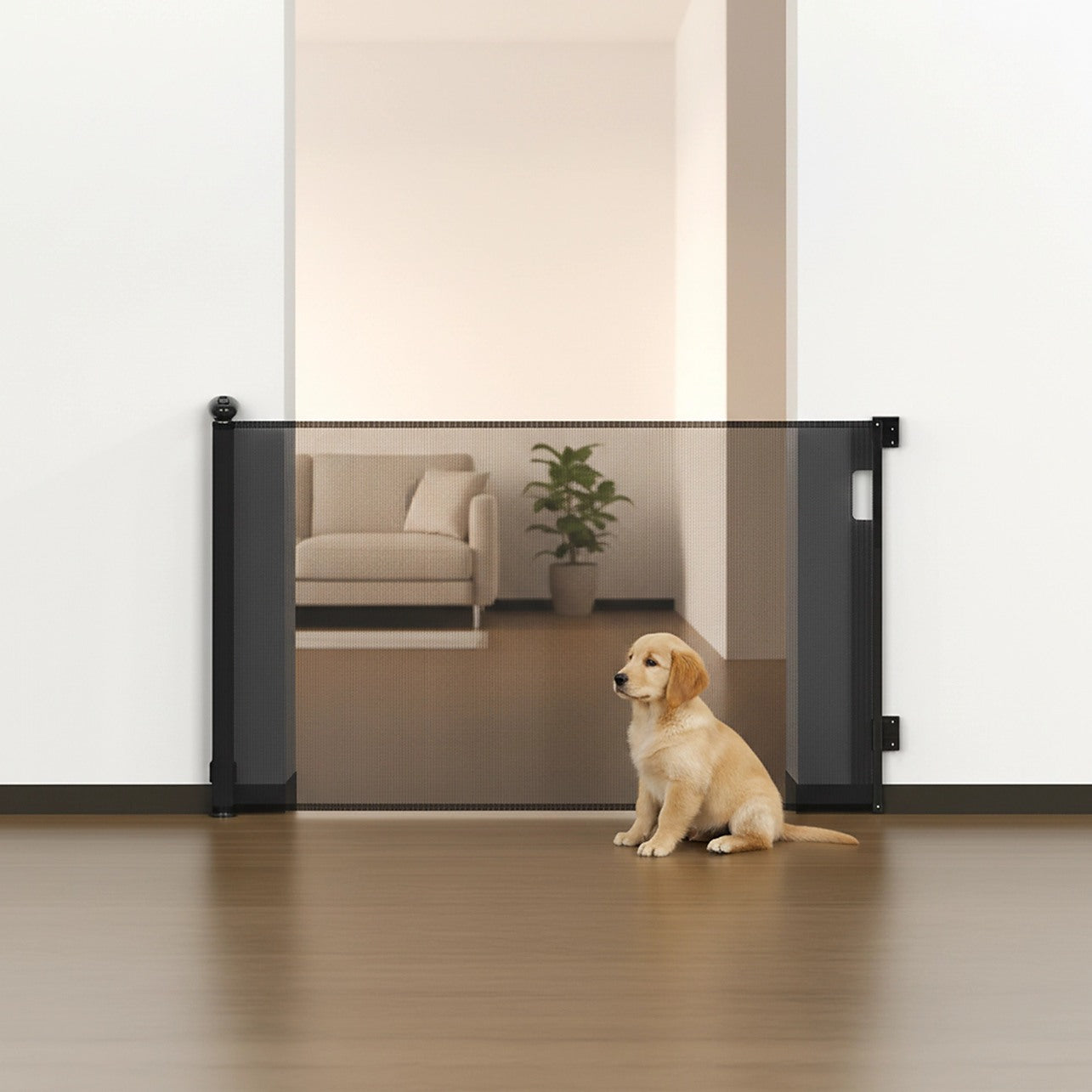 Create a safe and secure play area with this Retractable Baby Gate, designed for easy one-handed operation and effortless storage. Standing 86cm tall and extending up to 300cm wide, it's perfect for babies (6–24 months) and small to medium pets (10–40 lbs).