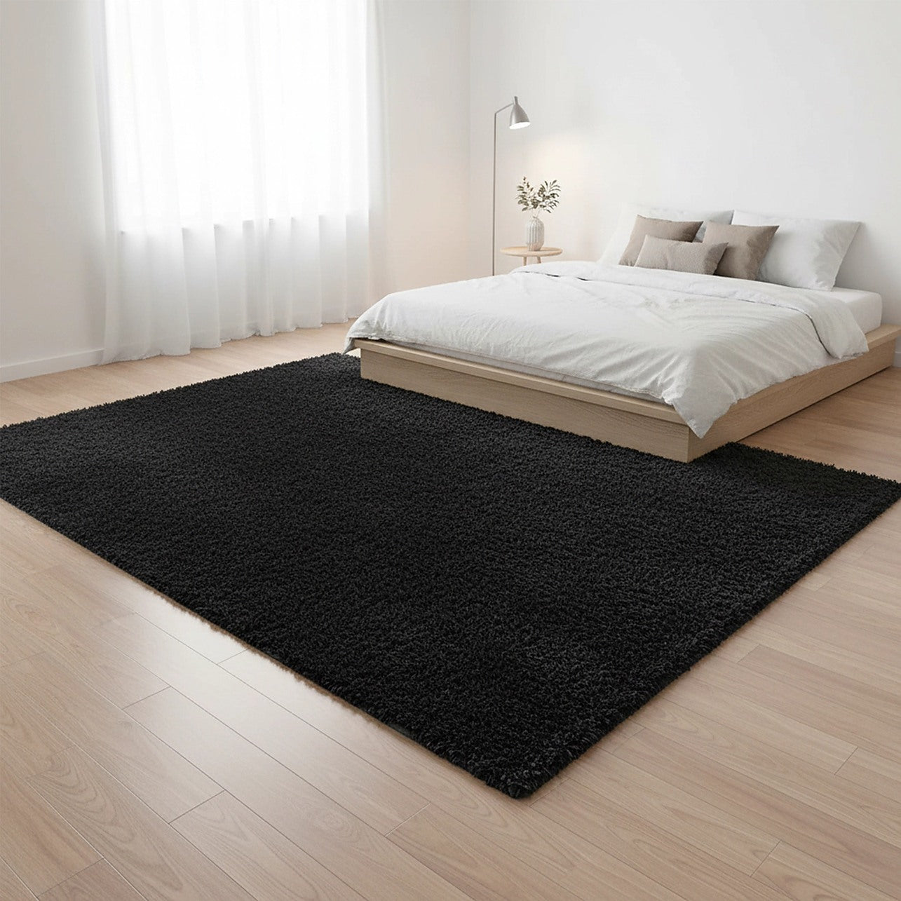 200x140cm Large Shaggy Floor Rug Area Carpet – Black Soft Mat for Bedroom or Living Room Comfort