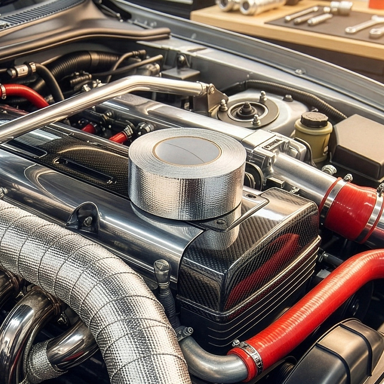 • 25m Aluminium Heat Wrap Tape – Designed for automotive exhaust pipes, insulation, and heat shielding