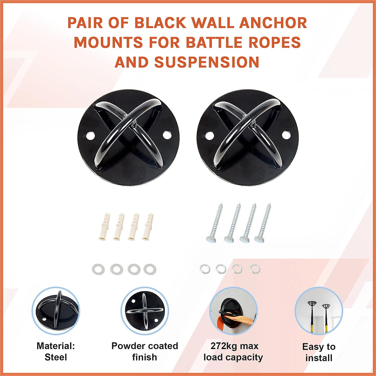- Package includes 2 x anchor wall mounts of approximately 114mm diameter