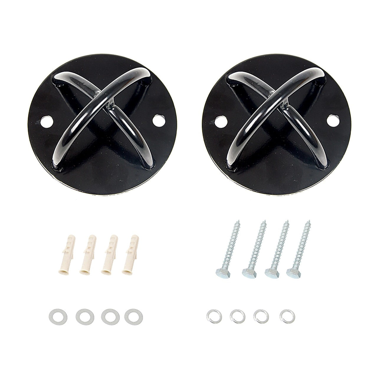 Pair of Black Wall Anchor Mounts for Battle Ropes, Suspension Training & Gym Use