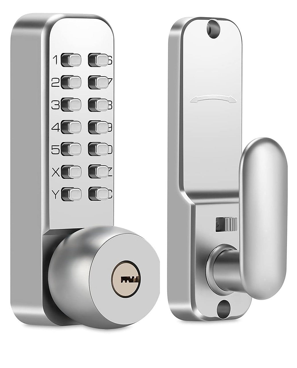 Secure your property with this mechanical keyless door lock featuring a full digital keypad and dual password and key access. Designed for reliability without batteries or wiring, this heavy duty lock offers waterproof performance, anti-theft security and long-lasting durability for residential and commercial use.