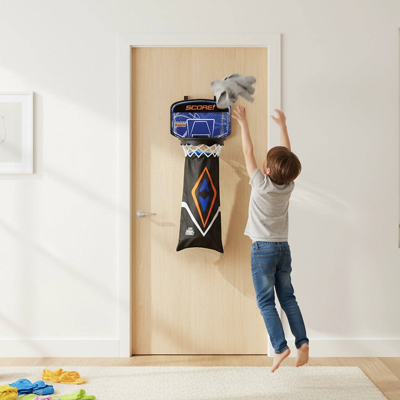 Hamper Basketball Laundry Hoop Hanging Clothes Basket Storage Kids Fun Door Bag