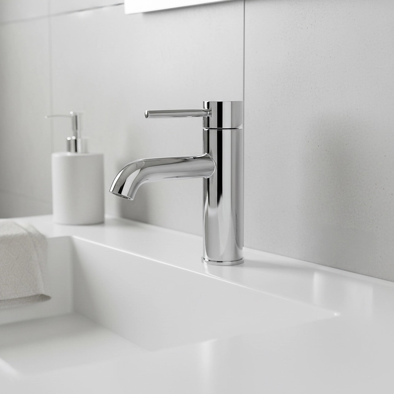 A streamlined, modern design combines with a classic and brilliant chrome finish for a timeless look that works great in any bathroom basin. And a durable solid brass construction ensures this mixer will serve you well for many years to come.