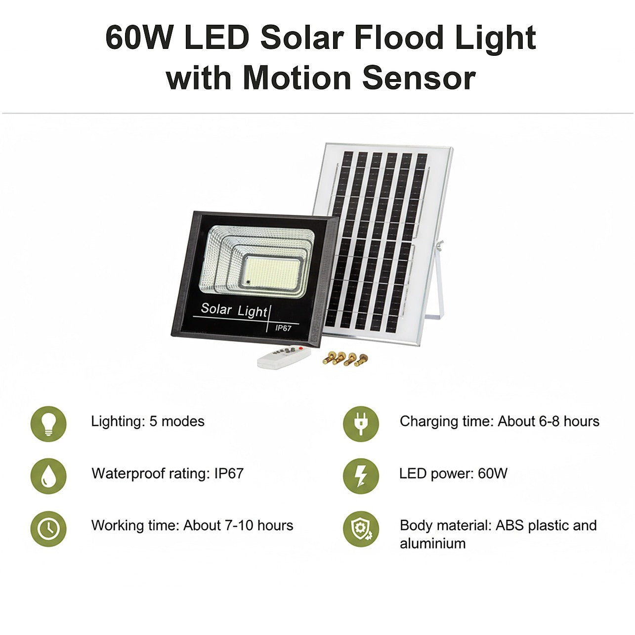 60W LED Solar Flood Light with Motion Sensor – Weatherproof Outdoor Security Lighting