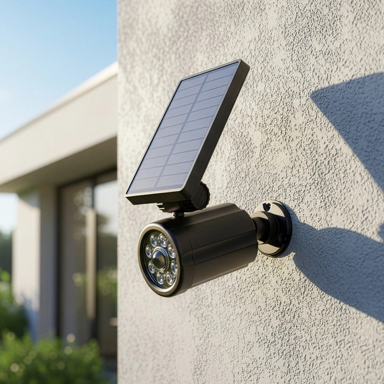 One of the standout features of this Solar LED Spotlight is its camera-like appearance. It even features a blinking red light that simulates the live-recording indicator found on most modern CCTV cameras. This clever design ensures that the security aspects of this incredible light remain active, even when it's not in use. If you aim to deter potential intruders before they even reach your home, our Solar LED Spotlight is an ideal choice.