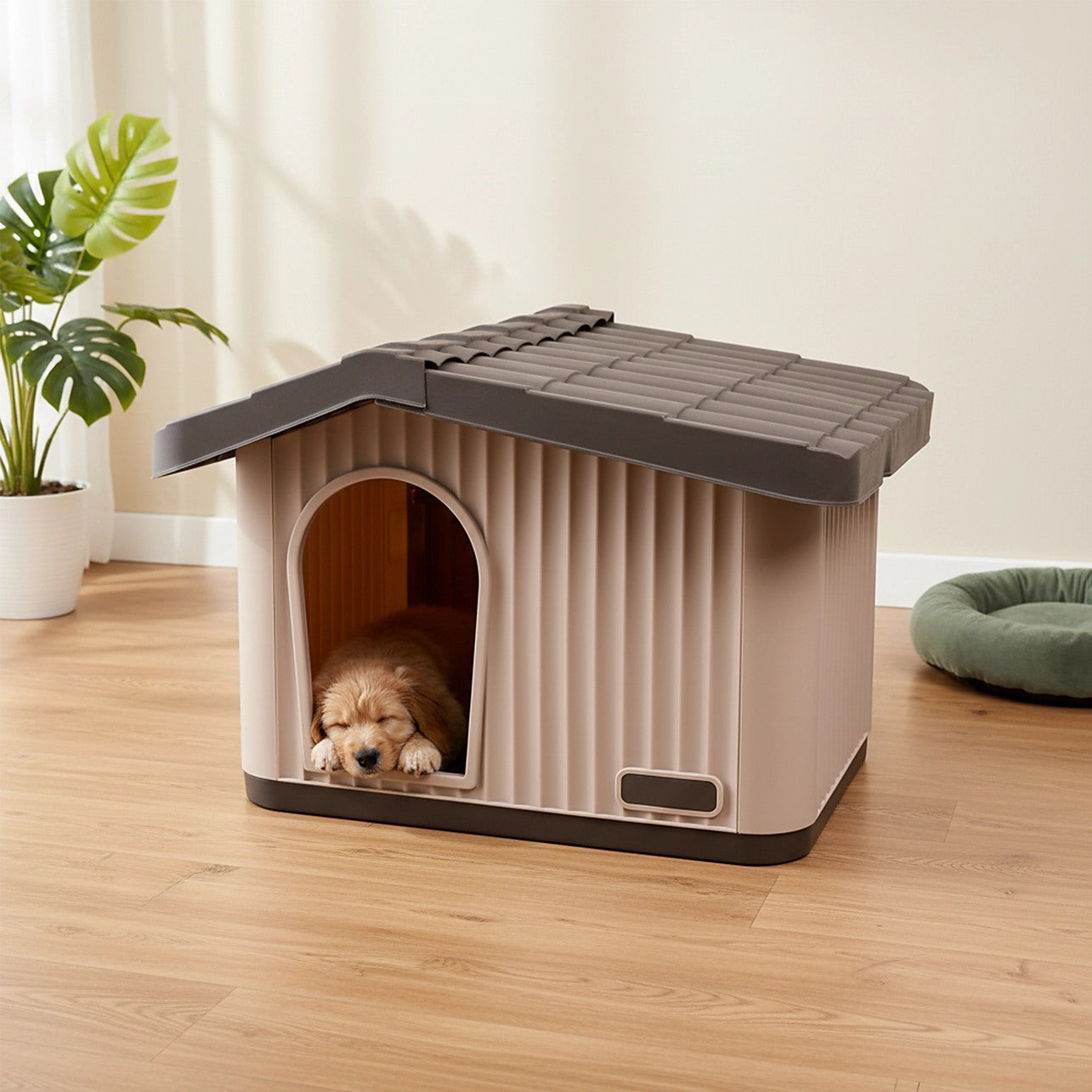 Stylish, practical, and comfortable, this plastic dog kennel offers your pet a secure place to rest while enhancing your outdoor or indoor space. A perfect everyday shelter for dogs who deserve comfort with a touch of charm.