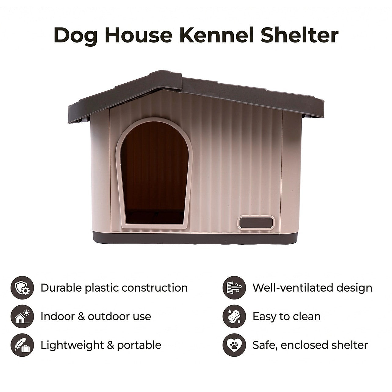 Plastic Dog House Kennel Shelter for Indoor & Outdoor Pets, Weatherproof