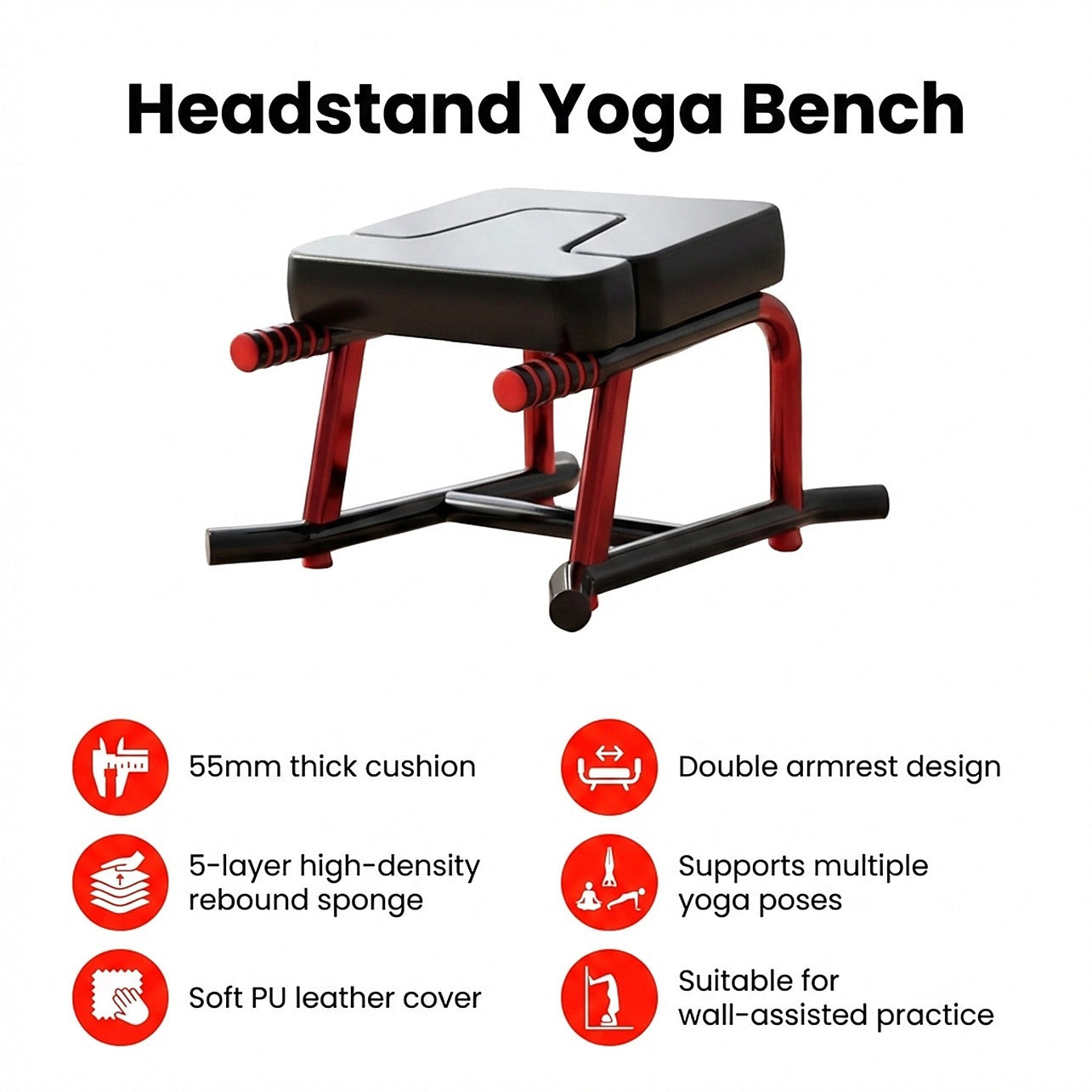 The double armrest design adds extra support and balance, allowing users to practise safely against a wall as they build strength and confidence. This versatile yoga bench supports a wide range of yoga poses beyond headstands, helping users improve balance, core strength, and flexibility.
