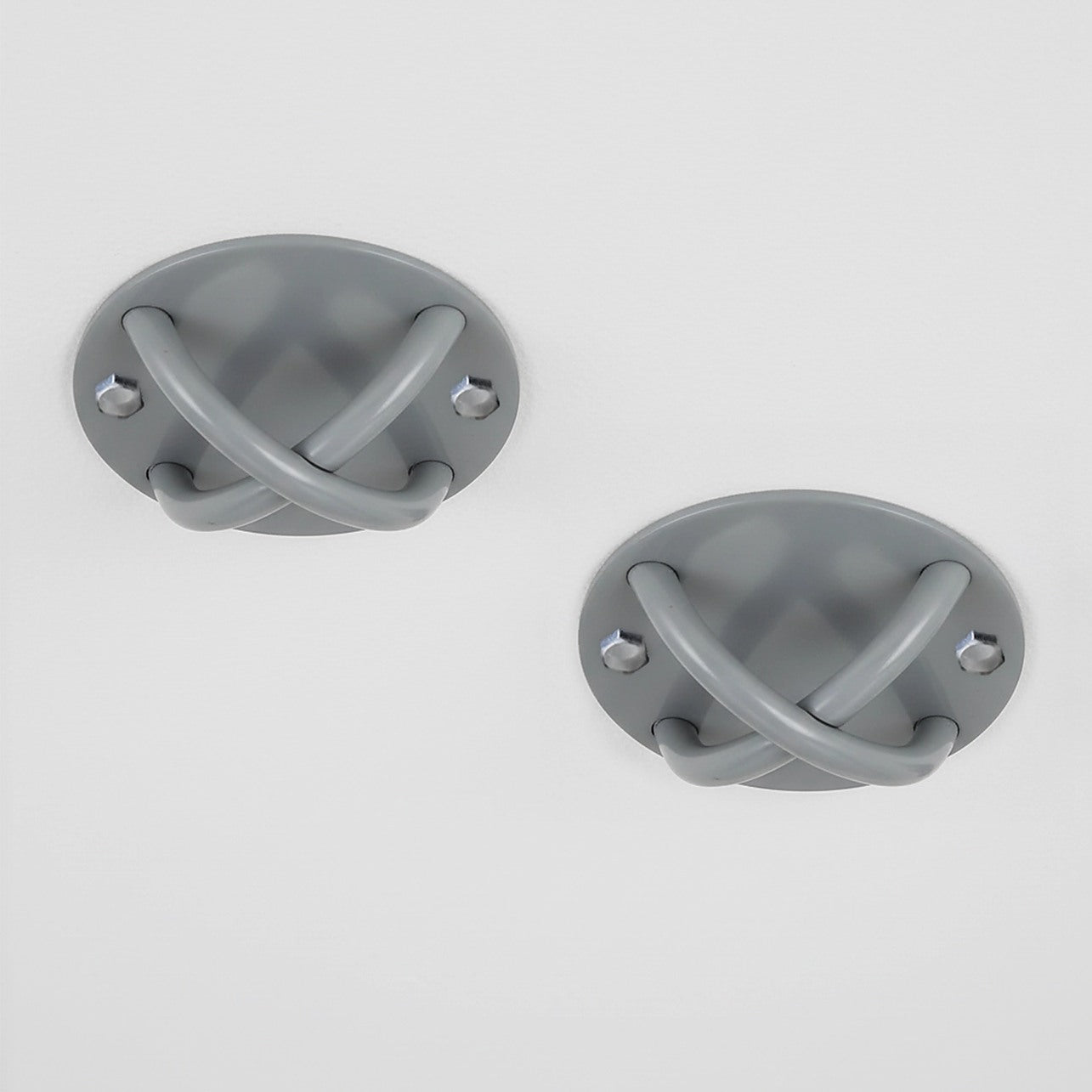 Pair of Grey Wall Anchor Mounts for Battle Ropes, Suspension Training & Gym Use