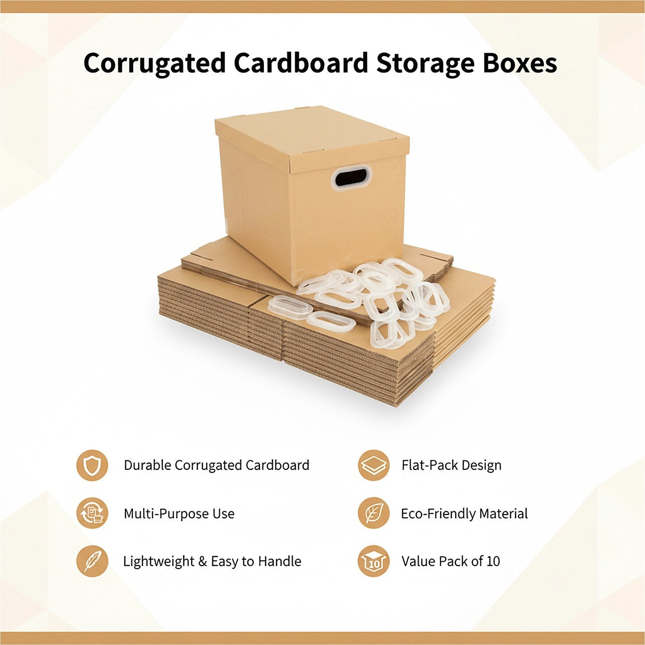 10Pcs Corrugated Cardboard Storage Boxes – Durable Multi-Purpose Organising Cartons