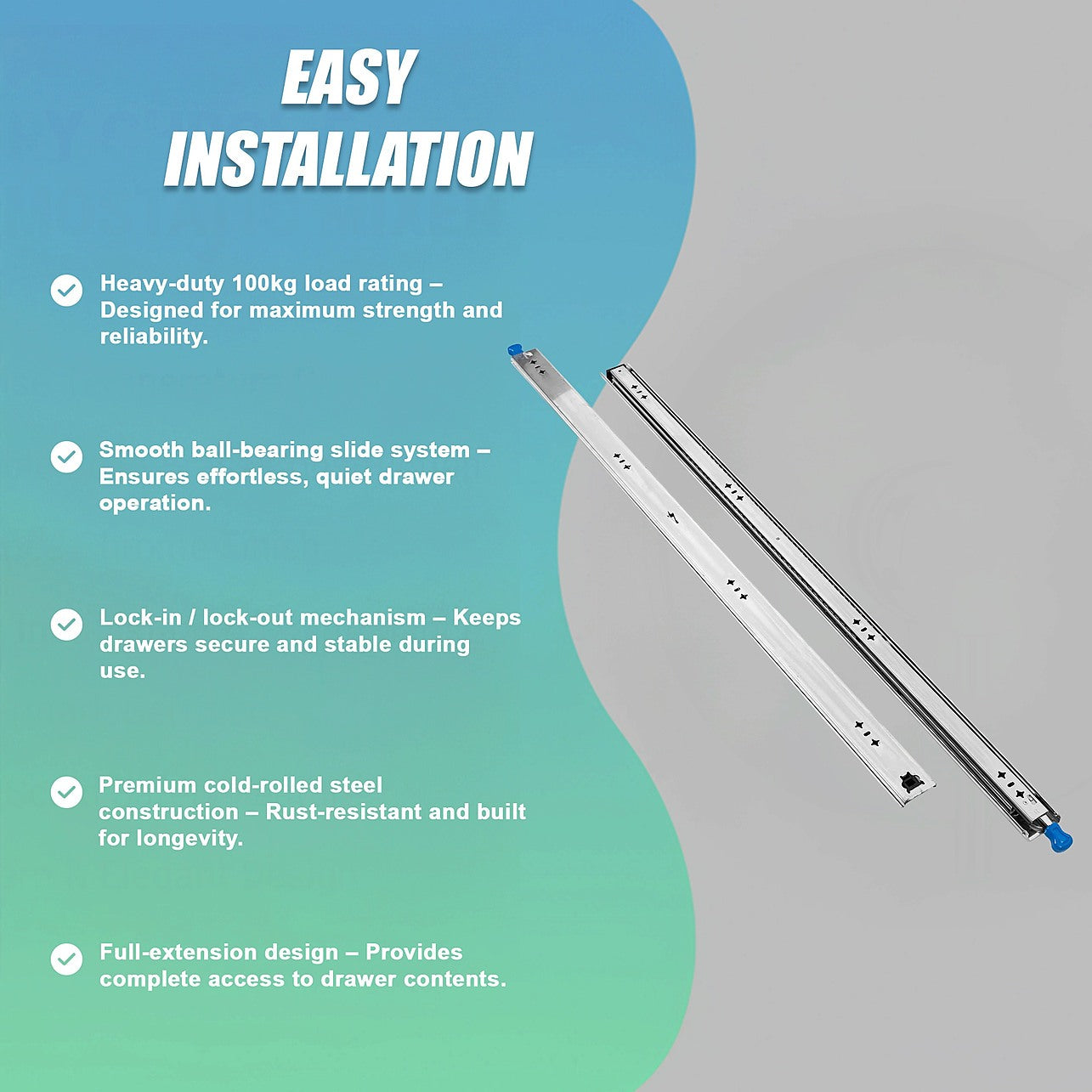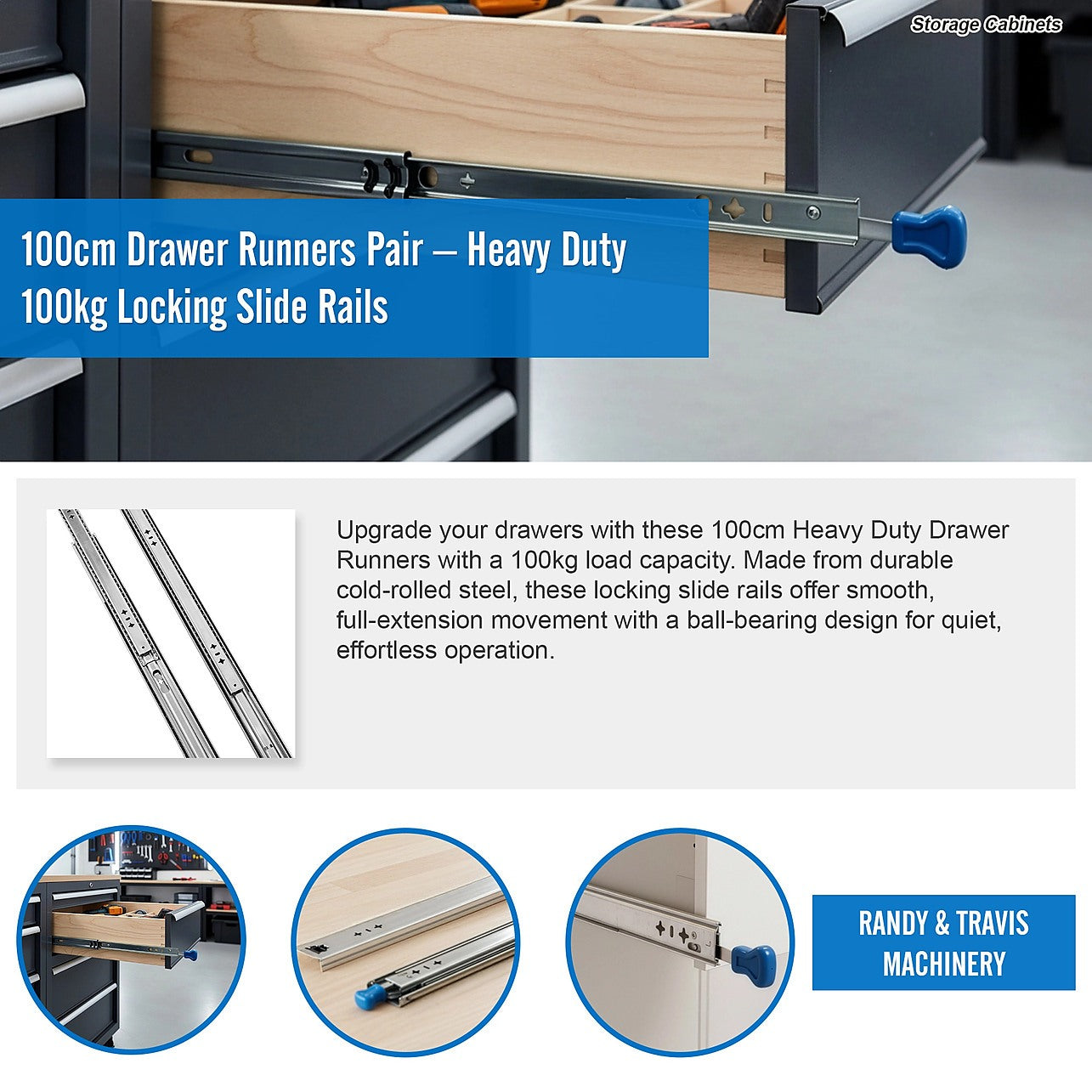 100cm Heavy Duty Drawer Runners Pair – 100kg Locking Slide Rails