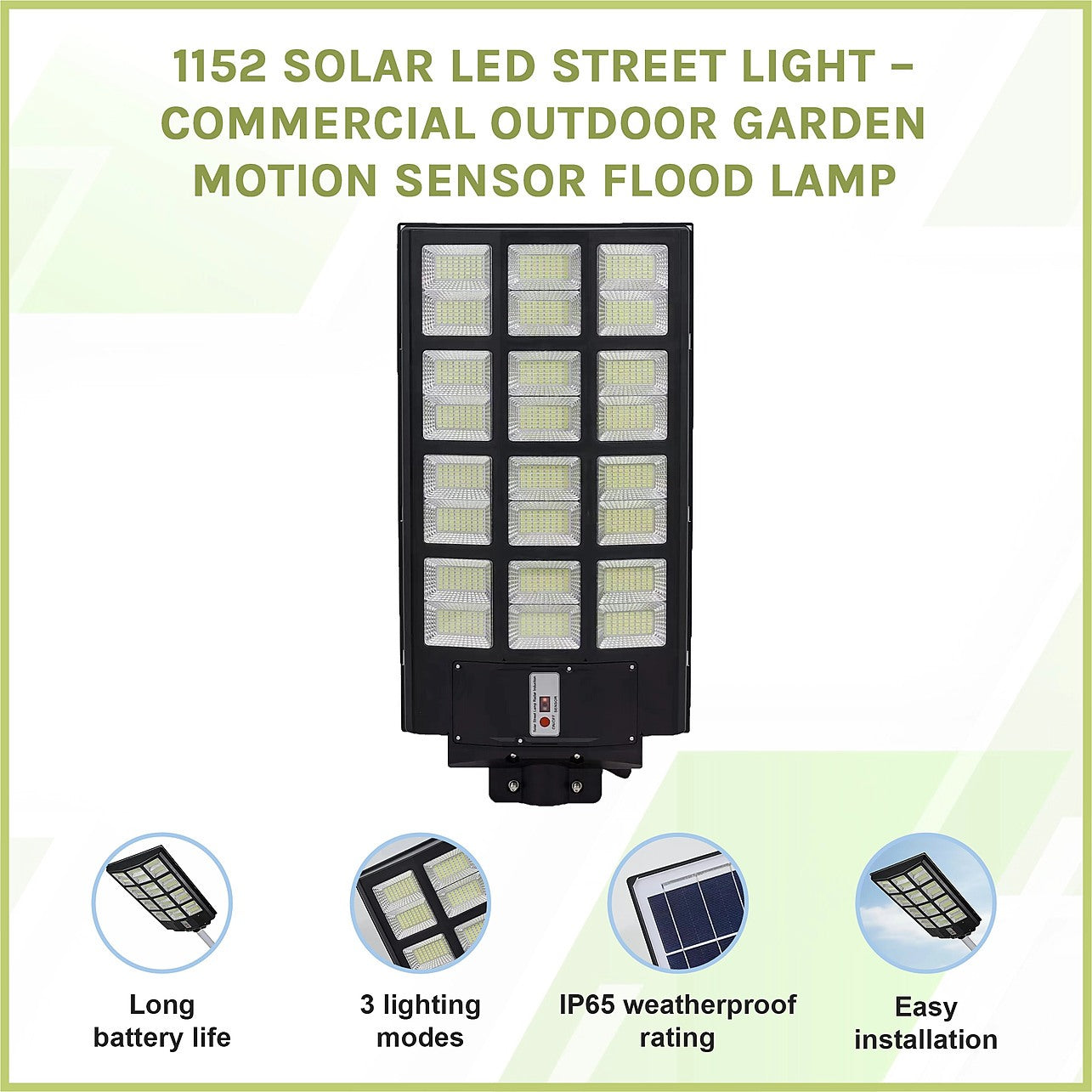 1152 Solar LED Street Light – Commercial Outdoor Flood Lamp with Motion Sensor