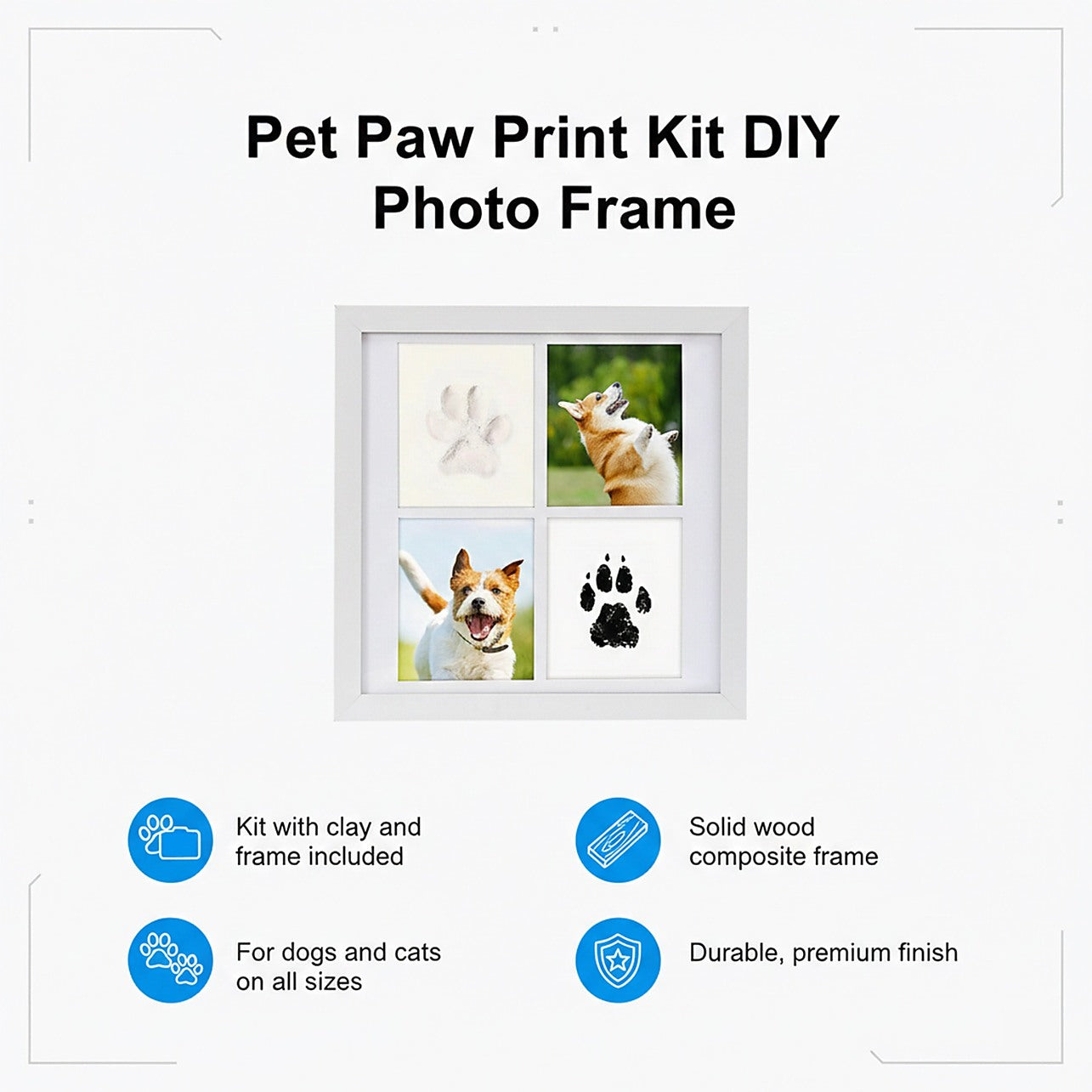 DIY Pet Paw Print Kit Photo Frame Keepsake for Dogs & Cats at Home
