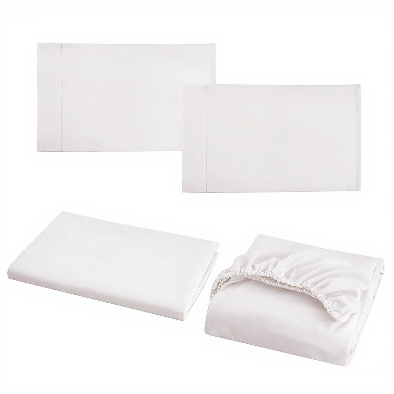 Upgrade your sleep with the Queen 1800 Series Microfiber Bed Sheet Set in elegant white. Crafted from premium double-brushed microfiber yarns, these sheets deliver a luxuriously soft feel with enhanced breathability and durability. The 16-inch deep-pocket fitted sheet ensures a snug fit on most mattresses, while the wrinkle-resistant design eliminates the need for ironing or fabric softeners.