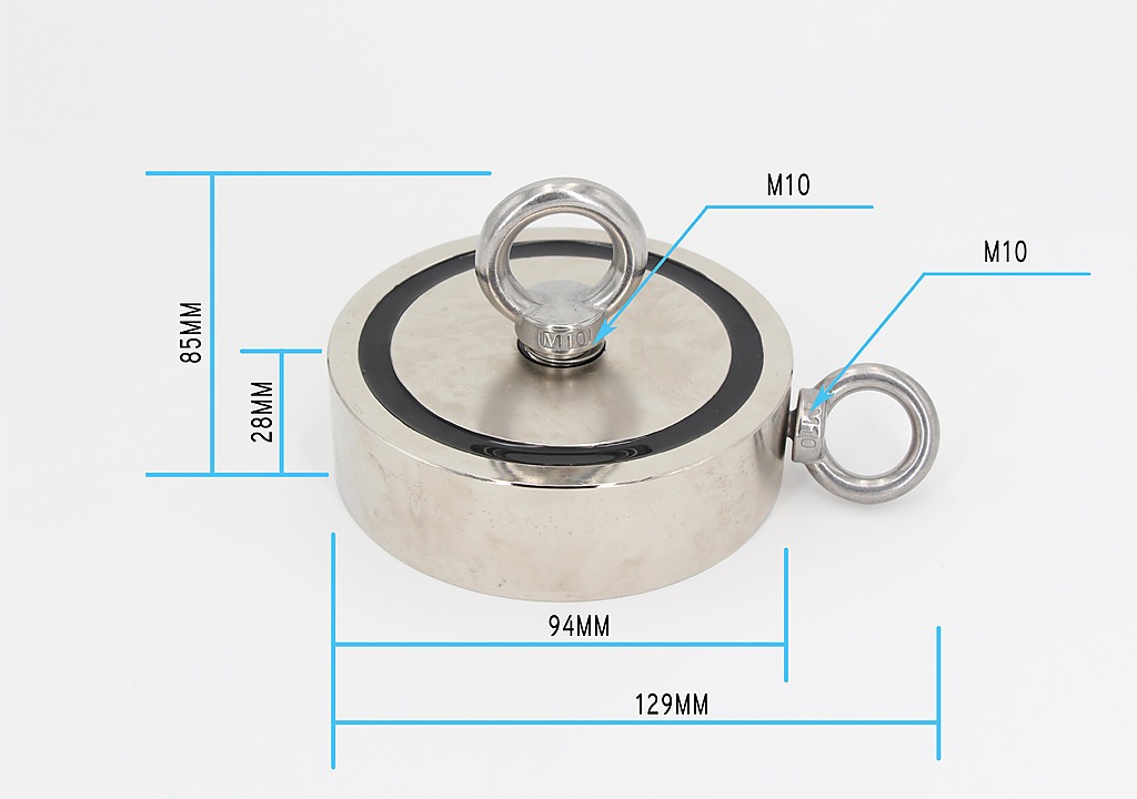 Looking for a two-sided magnet with the power to fish metallic objects from the water or buried in the ground? This 700-kilogramme-capacity neodymium magnet from Randy & Travis Machinery provides two-sided pulling power with 350-kilogram pulling forces on each side.